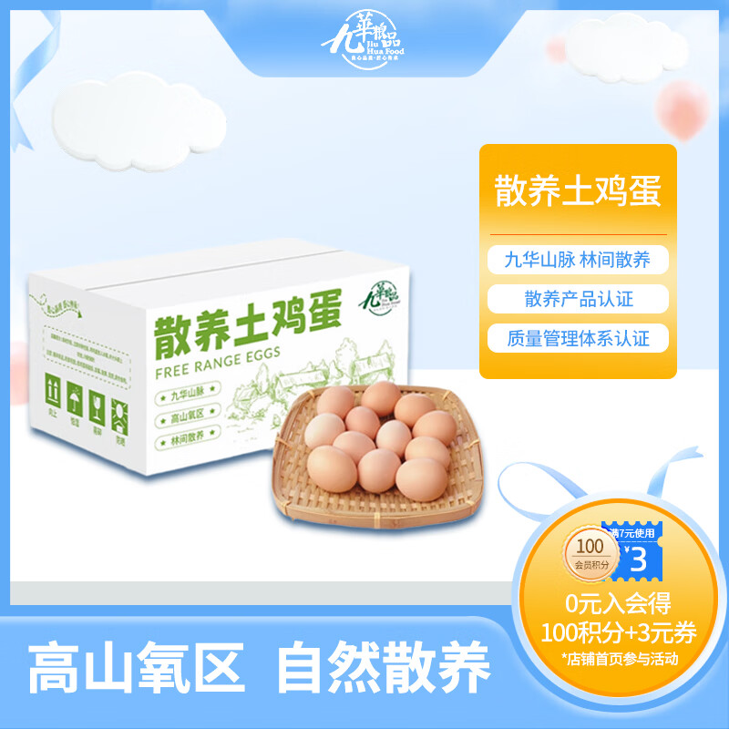九華粮品散养土鸡蛋40枚 净重3斤 鲜鸡蛋 林区散养 京东自营