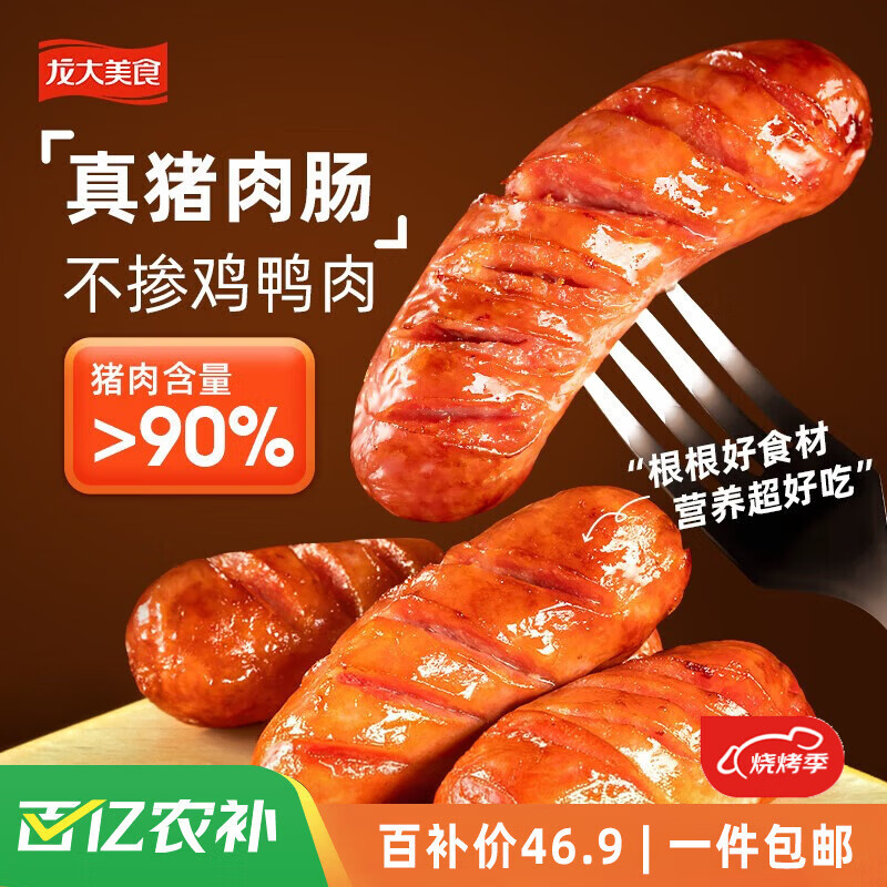 龙大美食烤肠四季纯猪肉肠净重1.6kg20根>90%猪肉火腿 火山石烤肠香肠烧烤