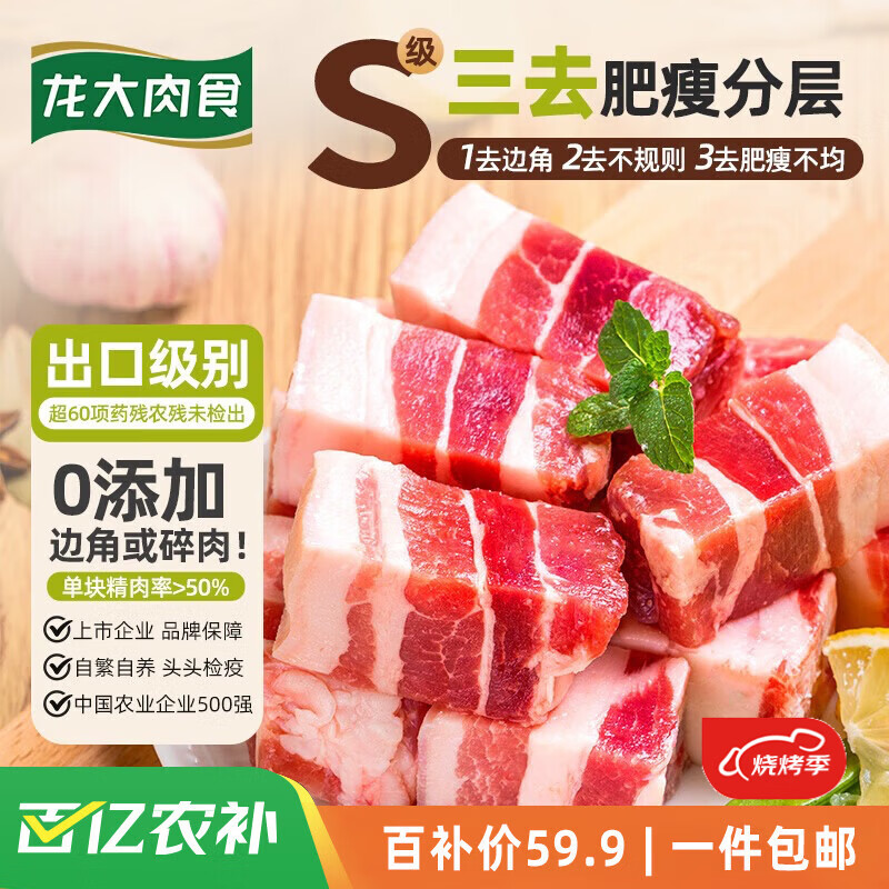 龙大肉食 猪五花肉块净重4斤 冷冻带皮五花肉 烧烤肉食材 出口日本级 猪肉