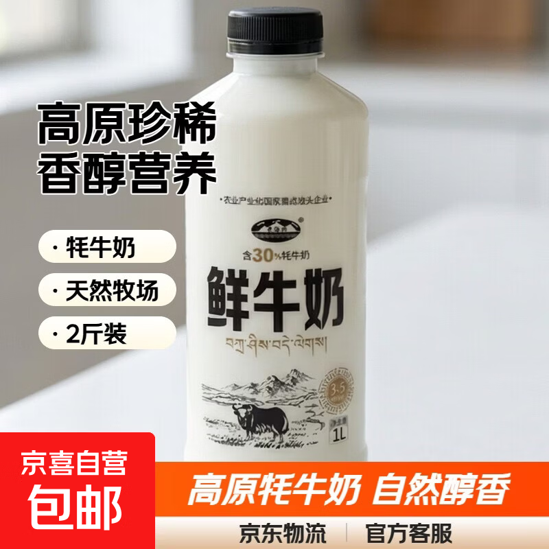 【牦牛奶更香醇】青海湖 纯牛奶+30%牦牛奶高端低温巴氏鲜奶营养 2瓶*1升超大瓶