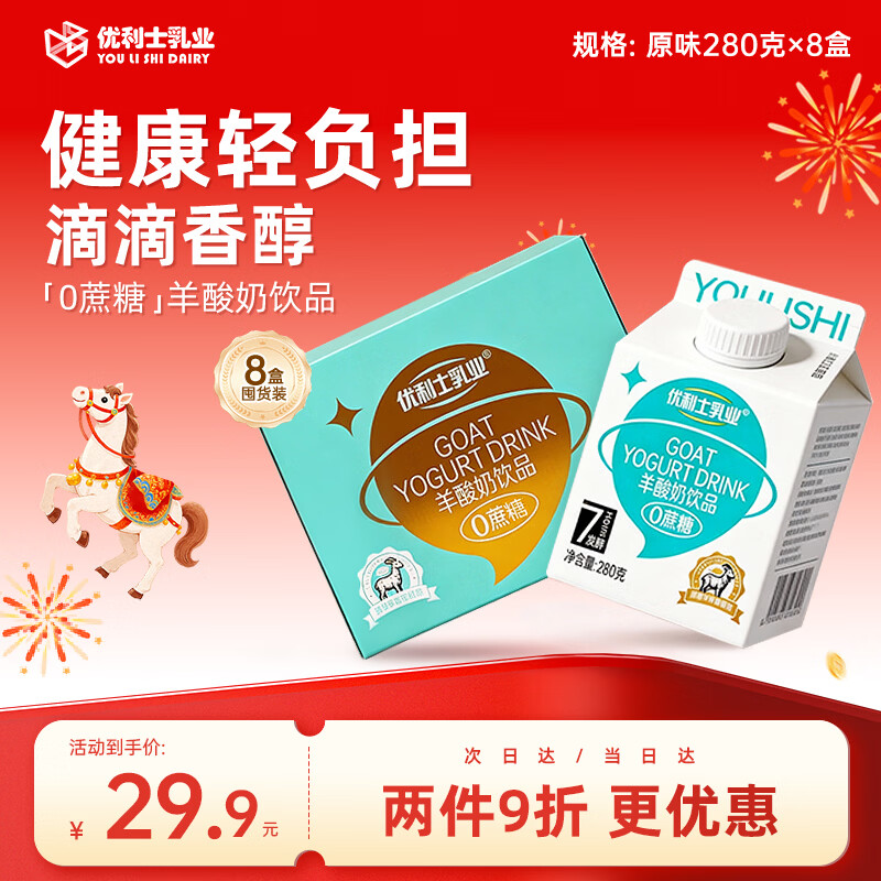 优利士乳业0蔗糖羊酸奶饮品280g*8盒 儿童老年早餐奶非牛奶年货送礼盒