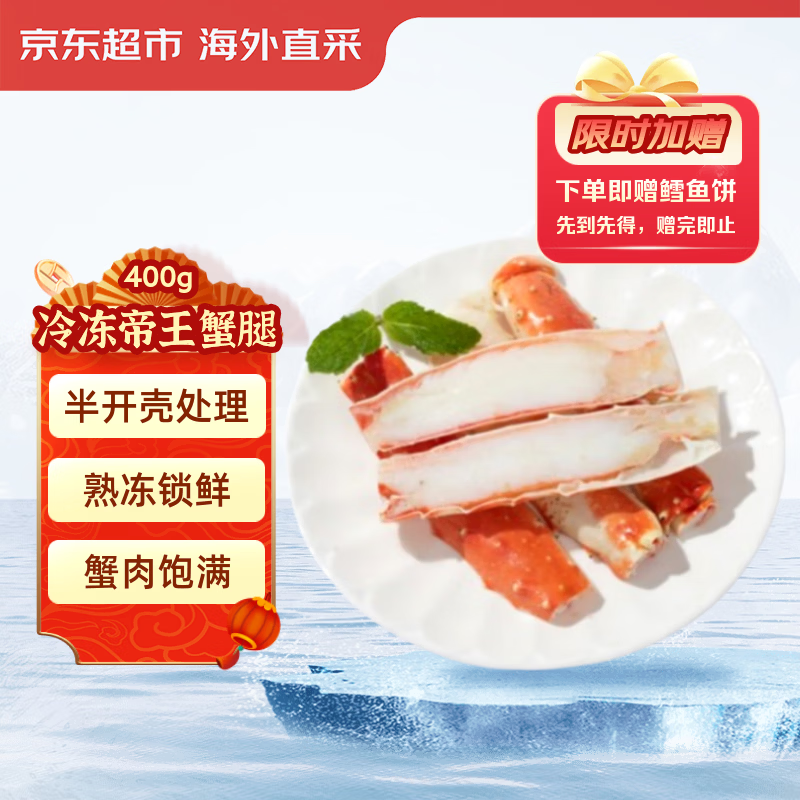 京东超市海外直采冷冻帝王蟹腿400g切片半开壳 送礼螃蟹蟹肉 自营海鲜