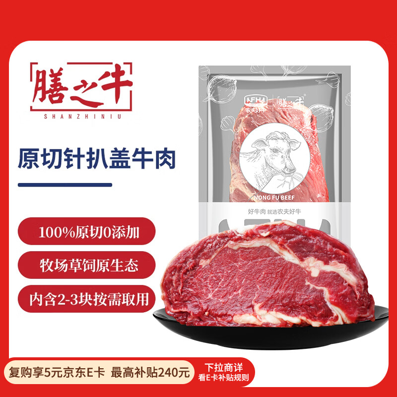膳之牛&农夫好牛 阿根廷草饲原切大块牛肉净重4斤 带筋膜生鲜牛肉