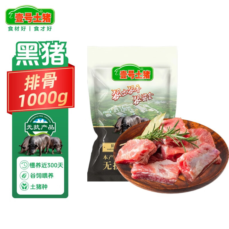 壹号土猪免切排骨2斤 谷饲慢养鲜黑猪肉生鲜冷冻土猪肉源头直发