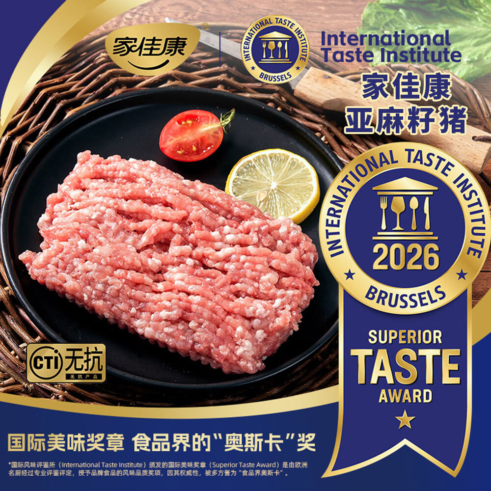 家佳康无抗亚麻籽猪肉馅320g 冷冻肉糜包子饺子丸子馅 国产猪肉生鲜