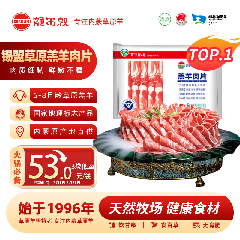 额尔敦内蒙草原羊肉片1斤羔羊肉片生鲜羊肉 火锅涮羊肉烧烤食材